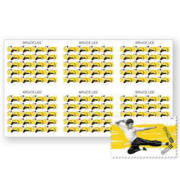 Honor the legendary Chinese American martial artist, actor, and filmmaker with the Bruce Lee Press Sheet without Die Cuts. The press sheet does not include perforations and features the design from the Bruce Lee Forever® stamp sheet.