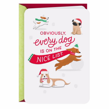 Front: Obivously every dog is on the nice list.Inside: Obivously you are too! Merry Christmas