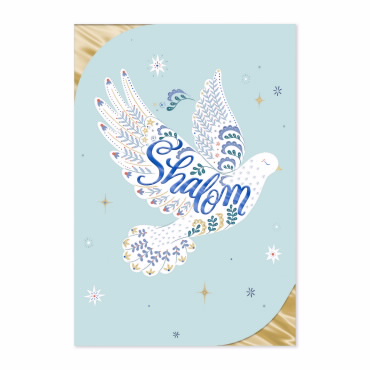 Front: ShalomInside: Wishing you the blessings of peace and happiness the light of faith and the warmth of home at hanuukkah and always.