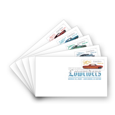 Celebrate a culture that originated in the working-class Mexican American/Chicano communities throughout the American Southwest with the Lowriders Digital Color Postmarks. Each collectible envelope in the set features a full-color postmark canceling a different Lowriders Forever® stamp — the perfect keepsake for car enthusiasts and collectors alike.
