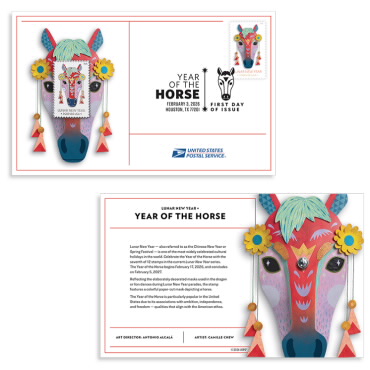 Add a festive touch to your New Year celebrations with the Lunar New Year: Year of the Horse Stamp Pin with Cancellation Card.Product Details:The Lunar New Year: Year of the Horse Stamp Pin is mounted on a collectible card affixed with a Forever® stamp canceled with the official First Day of Issue postmark.